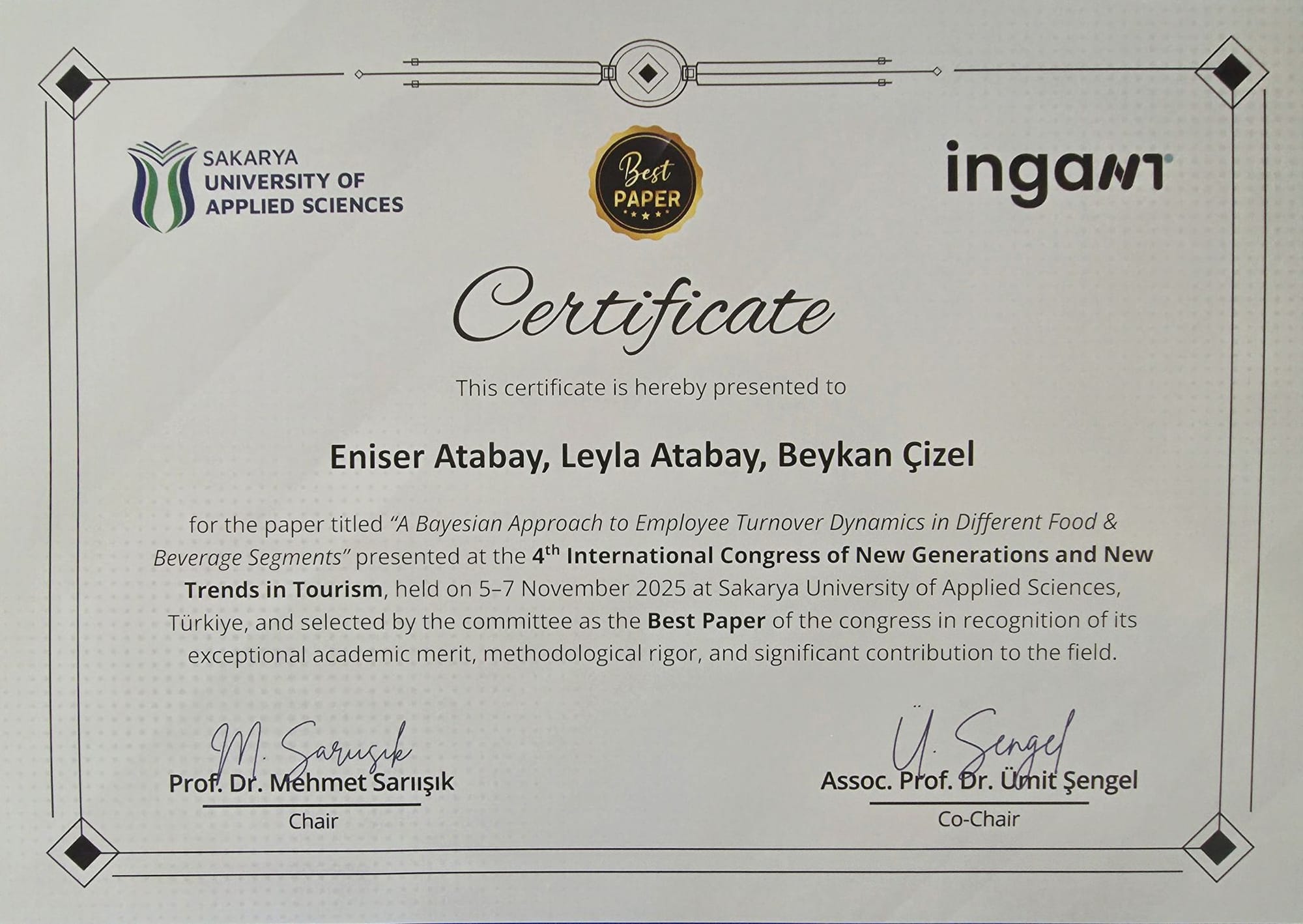 Çalışmayı Eniser Atabay ve danışmanım Prof. Dr. Beykan Çizel ile birlikte hazırladık. Ödülü birlikte almak güzeldi.